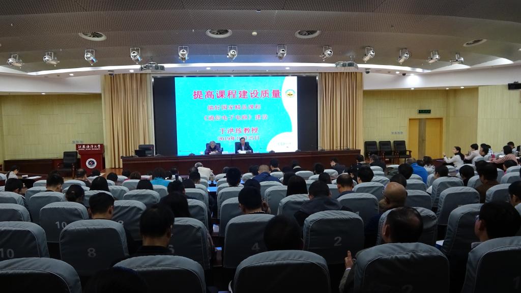 报告会上,于洪珍教授以精品课程建设重要性为引,以《通信电子电路》课程建设为例,讲述了该课程建设历经23届88个班级的探索和实践,总结并确立了教学与科研、生产相结合,启发、创新式教学,传统教学与多媒体教学手段相结合,教书与育人相结合为指导思想的课程建设思路。于教授详细介绍了课程建设需要重点抓好七个方面的工作:抓好师资队伍建设;抓好教学内容建设;抓好教材建设;使用先进的教学方法和手段;抓好实验建设;抓好网络教学环境建设;抓好讲课录像。