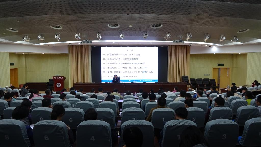 迟宝东主任从双“双万计划”说起,从“新时代、新技术、新对象、新定位和新机制”方面讲述了教育之大变化,提出“学校办学理念要变,人才培养方案要变,课程教学要变,教材要变,教师自身也要变”。而课程教材建设要因事而化,要践行“四个回归”,要有“大思政”意识,要变轨超车重塑教育教学形态。课程教材建设落实路径要以课程建设为抓手,要从“两性一度”(高阶性+创新性+挑战度)到“三位一体”(课程思政元素+先进教学内容+先进呈现方式)。并以南京审计大学《会计学》的“磨课”历程为例,分享了课程思政、专业思政的实现路径。