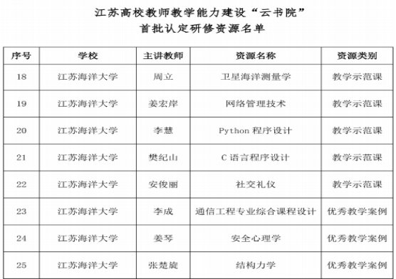 近日,江苏高校教师教学发展研究会和江苏省高等学校教育信息化研究会联合公布了“江苏高校教师教学能力建设‘云书院’首批认定研修资源名单”,我校8门(满额推荐10门)研修资源入选首批“云书院”平台,全省共有111门入选。