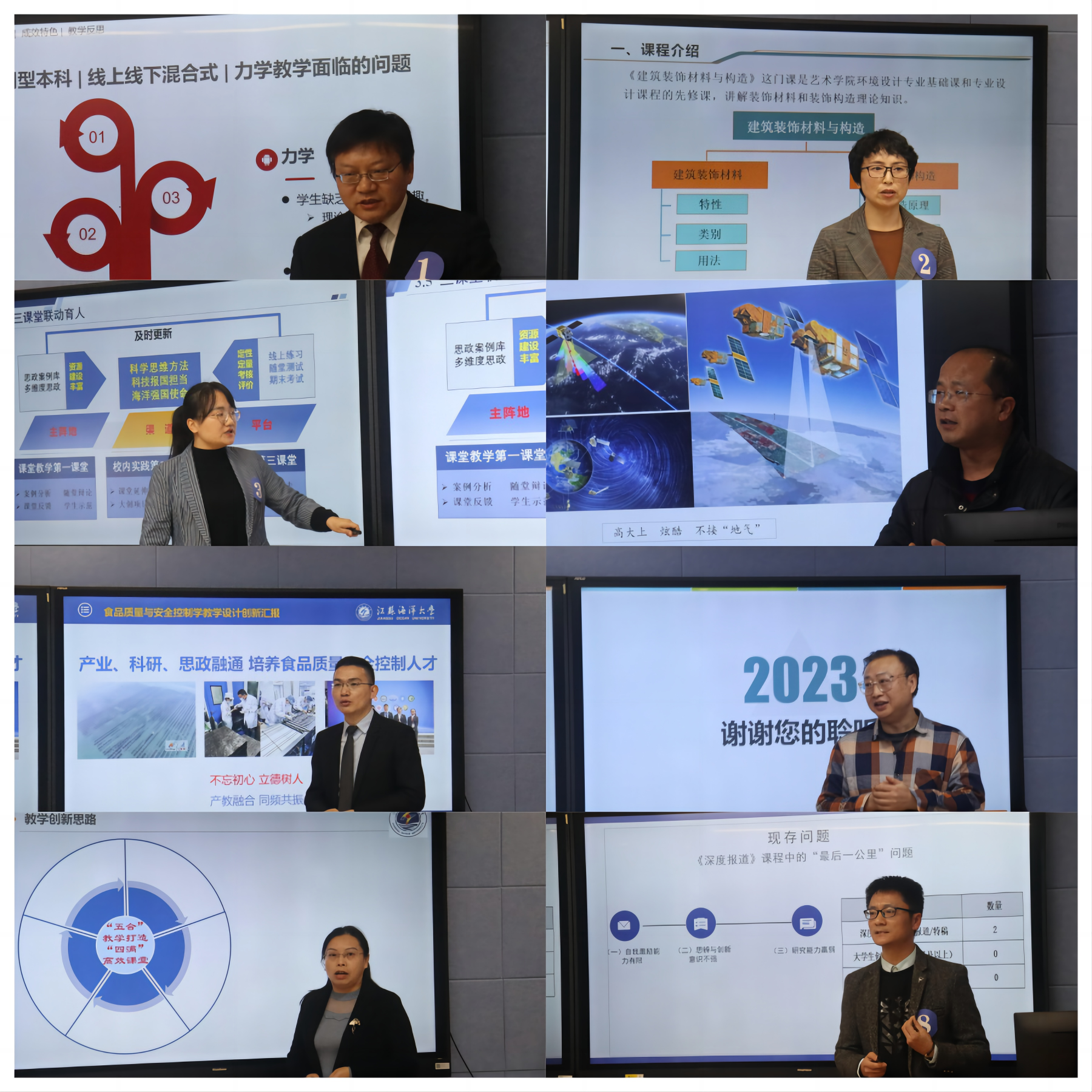 “江苏海洋大学2023年教师教学创新大赛”评审标准和比赛形式与省级、国家级教学创新大赛完全一致,竞赛面向全校教师设置了正高、副高、中级及以下三个组别。初赛由各学院组织,共有28名参赛教师进入校级决赛,经过决赛第一阶段校外专家评审,21名参赛教师进入决赛第二阶段现场环节角逐。决赛第二阶段现场环节,每位参赛教师进行了15分钟教学设计创新汇报,基于参赛课程的教学实践经验与反思,紧紧围绕课程教学目标,聚焦教学实践的真实“问题”,通过课程内容的重构、教学方法的创新、教学环境的创设、教学评价的改革等,展示了课程创新的整体思路,多维呈现教学创新成效及其推广价值。