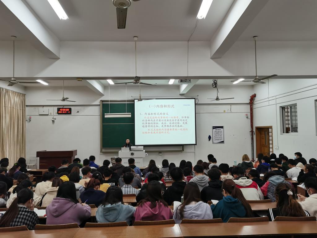 10月27日下午,教师教学发展中心在苍梧校区文通楼124室举办思政课程教学观摩活动。2018年校课堂教学改革专项课题立项、2020年校微课教学比赛一等奖获得者孙文静老师讲授了《马克思主义基本原理概论》课程。副校长严云洋兴致勃勃出席,20余名教师参加了此次活动。